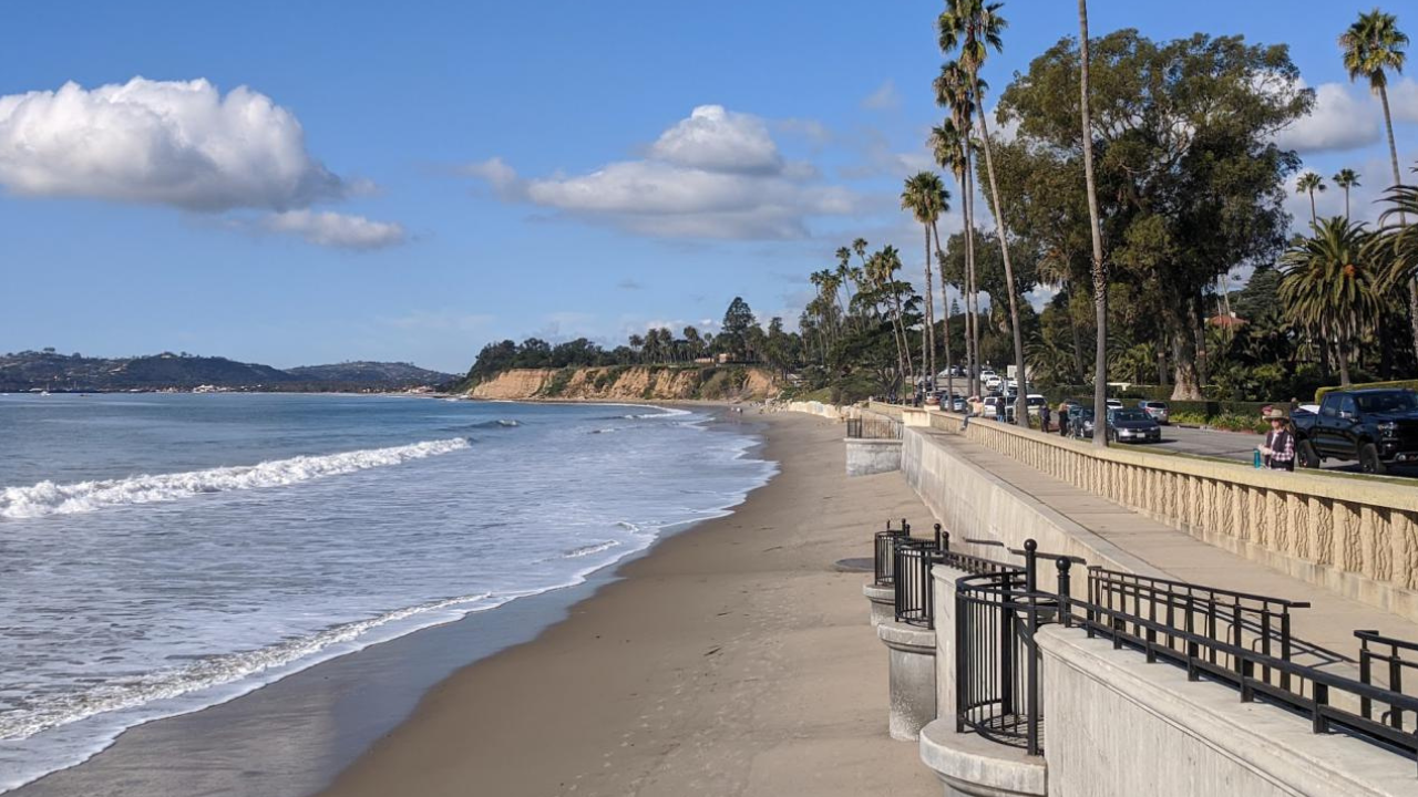 Butterfly Beach, located in nearby Montecito, is known for its calm setting and scenic views. Unlike some of the more central beaches, it tends to feel quieter, especially outside peak afternoon hours. The shoreline is clean and open, making it ideal for a slow walk, sitting by the water, or simply watching the waves come in without distraction.